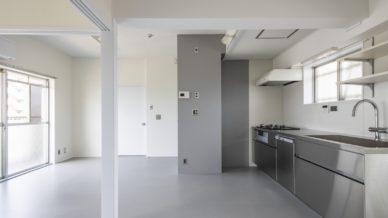 2DKのマンションを1LDKへとリノベーション。間仕切りのないおおらかさと、モノクロームの潔さが際立つ、シンプルで洗練された住空間に生まれ変わりました。