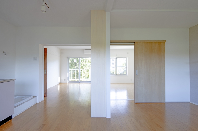 キッチンと洋室を仕切っていた壁を撤去し、広々としたダイニングキッチンに改装しました。窓から緑豊かな景色をパノラマで楽しみながら食事ができるスペースが生まれました。また、南北に位置する洋室の間も一部壁を取り除き、新たに風が通り抜ける快適な動線を確保しました。